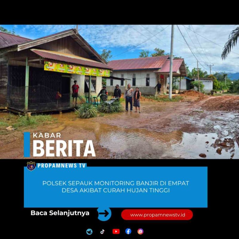 SINTANG //propamnewstv.id — Polsek Sepauk melakukan monitoring terhadap peristiwa banjir yang melanda empat desa di wilayah hukum Polsek Sepauk, Kabupaten Sintang, akibat tingginya curah hujan, Kamis (8/1/2026).