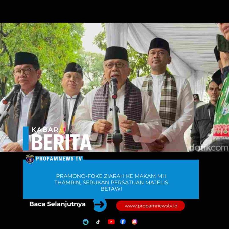 Jakarta, // PropamNewstv.id – Gubernur DKI Jakarta Pramono Anung bersama Ketua Dewan Adat Majelis Kaum Betawi Fauzi Bowo (Foke) melakukan ziarah ke Makam Pahlawan Mohammad Husni (MH) Thamrin, TPU Karet Bivak, Jakarta Pusat. Ziarah ini dalam peringatan haul ke-85 MH Thamrin.