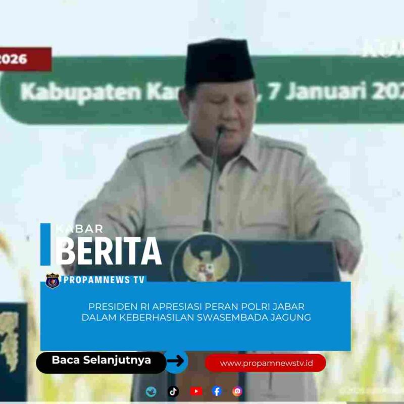 Jakarta, // PropamNewstv.id – Presiden Republik Indonesia Prabowo Subianto memberikan apresiasi terhadap peran Polri, khususnya Polda Jawa Barat, dalam mendukung keberhasilan swasembada jagung nasional. Apresiasi tersebut disampaikan dalam rangkaian Panen Raya dan Pemberian Penghargaan Swasembada Pangan.