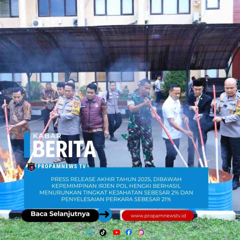 Serang //propamnewstv.id – Kepolisian Daerah (Polda) Banten menggelar Press Release Akhir Tahun 2025 sebagai bentuk pertanggungjawaban kinerja kepada masyarakat sepanjang tahun 2025. Kegiatan ini dipimpin langsung oleh Kapolda Banten Irjen Pol Hengki, yang memaparkan capaian kinerja, program unggulan, serta situasi keamanan dan ketertiban masyarakat (Kamtibmas) di wilayah hukum Polda Banten.