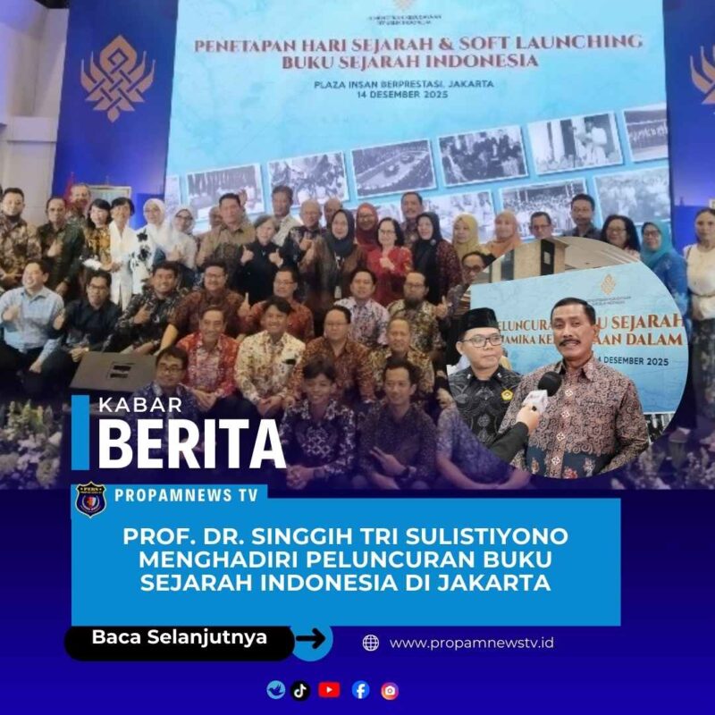 Jakarta, 14 Desember 2025 // propamnewstv.id – Penetapan Hari Sejarah Nasional dan soft launching Buku Sejarah Indonesia yang digelar oleh Kementerian Kebudayaan di Gedung Kementerian Kebudayaan, Jakarta, pada Minggu (14/12) menarik perhatian berbagai kalangan, terutama para sejarawan, budayawan, dan tokoh-tokoh penting dalam dunia kebudayaan. Acara tersebut dihadiri oleh Menteri Kebudayaan Fadli Zon, penulis, editor, serta para ahli sejarah dan budaya.