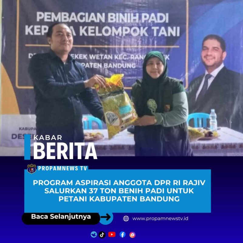 KAB. BANDUNG // PropamNewsTV.id — Program aspirasi Anggota DPR RI Komisi IV dari Partai NasDem, Rajiv, berupa bantuan benih padi kepada kelompok tani se-Kabupaten Bandung, dilaksanakan pada Rabu (17/12/2025).