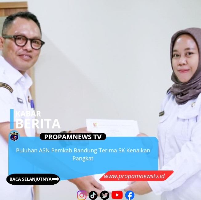 KABUPATEN BANDUNG, // PropamNewstv.id — Badan Kepegawaian dan Pemberdayaan Sumber Daya Manusia (BKPSDM) Kabupaten Bandung menyerahkan Surat Keputusan (SK) kenaikan pangkat periode Maret 2026 kepada puluhan aparatur sipil negara (ASN) di Kantor BKPSDM Soreang, Rabu (18/2/2026).