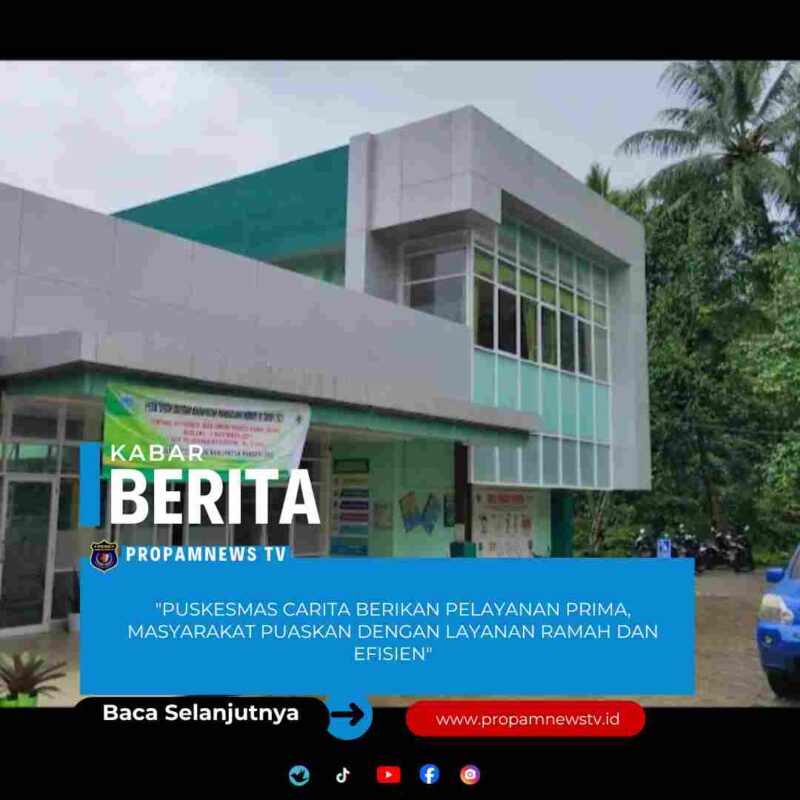 Pandeglang Banten // PropamNewstv.id – Pelayanan puskesmas Carita yang baik berfokus no pada pelayanan no prima ( excellent Bu service ) ramah cepat efisien dan komunikatif, dengan Setandar tinggi dalam fasilitas,SDM kompeten (dokter, perawat bidan dll ) mencakup penyambutan hangat, proses antrean teratur, penjelasan diagnosis transparan, solusi pengobatan tepat untuk memastikan pasien merasa nyaman dan puas.