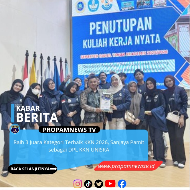 Banjarmasin, // PropamNewstv – Prestasi gemilang kembali ditorehkan dalam pelaksanaan Kuliah Kerja Nyata (KKN) Universitas Islam Kalimantan (UNISKA) Tahun 2026. Sanjaya, M.Pd selaku Dosen Pembimbing Lapangan (DPL) KKN UNISKA, berhasil mengantarkan kelompok binaannya meraih tiga juara kategori terbaik pada ajang evaluasi dan penilaian KKN tahun ini.