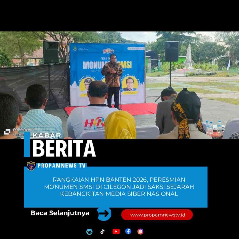 Cilegon //propamnewstv.id – Masih dalam rangkaian peringatan Hari Pers Nasional (HPN) 2026 di Provinsi Banten mencapai momentum bersejarah. Setelah melakukan ekspedisi budaya dari Kesultanan Banten Lama, menapaki jejak kemanusiaan di Museum Multatuli Lebak, hingga jamuan hangat bersama Bupati Pandeglang dan menikmati pesona Anyer, para delegasi SMSI se-Indonesia berkumpul di Kota Cilegon untuk meresmikan Monumen Serikat Media Siber Indonesia (SMSI), Sabtu (7/2/2026).