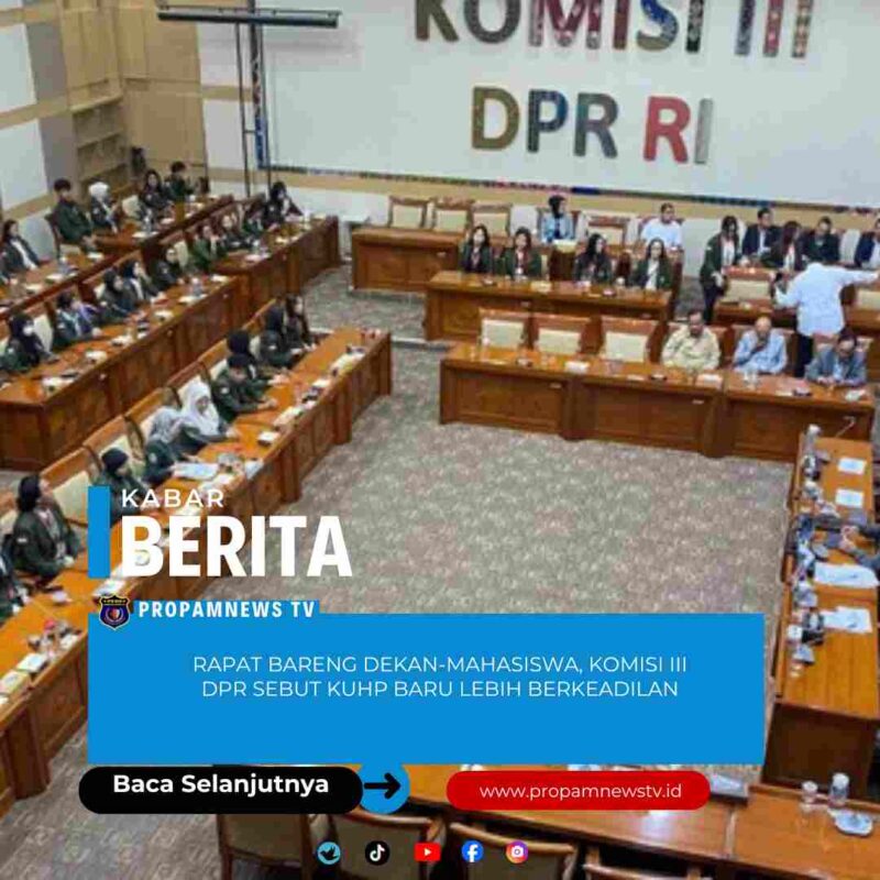 Jakarta, // PropamNewstv.id – Komisi III DPR RI menggelar rapat dengar pendapat umum (RDPU) dengan dekan dan mahasiswa fakultas hukum Universitas Jenderal Achmad Yani. Ketua Komisi III DPR RI, Habiburokhman, menjelaskan jika Kitab Undang-Undang Hukum Pidana (KUHP) dan Kitab Undang-Undang Hukum Acara Pidana (KUHAP) baru diharapkan lebih berkeadilan dari aturan hukum sebelumnya.