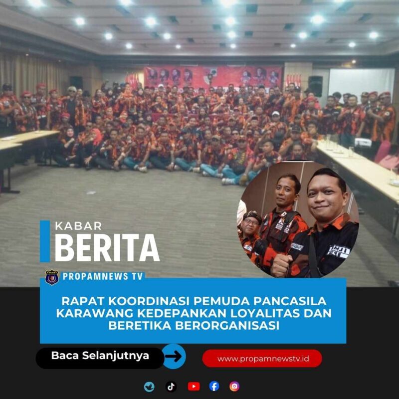 Karawang, 20 Desember 2025 // propamnewstv.id – Ormas Pemuda Pancasila Kabupaten Karawang kembali menggelar Rapat Koordinasi dengan tema “Membangun Organisasi dengan BerKTA-nisasi dan Beretika serta Menjungjung Loyalitas”. Acara ini diadakan di Hotel Brits Karawang, Jawa Barat, Indonesia.