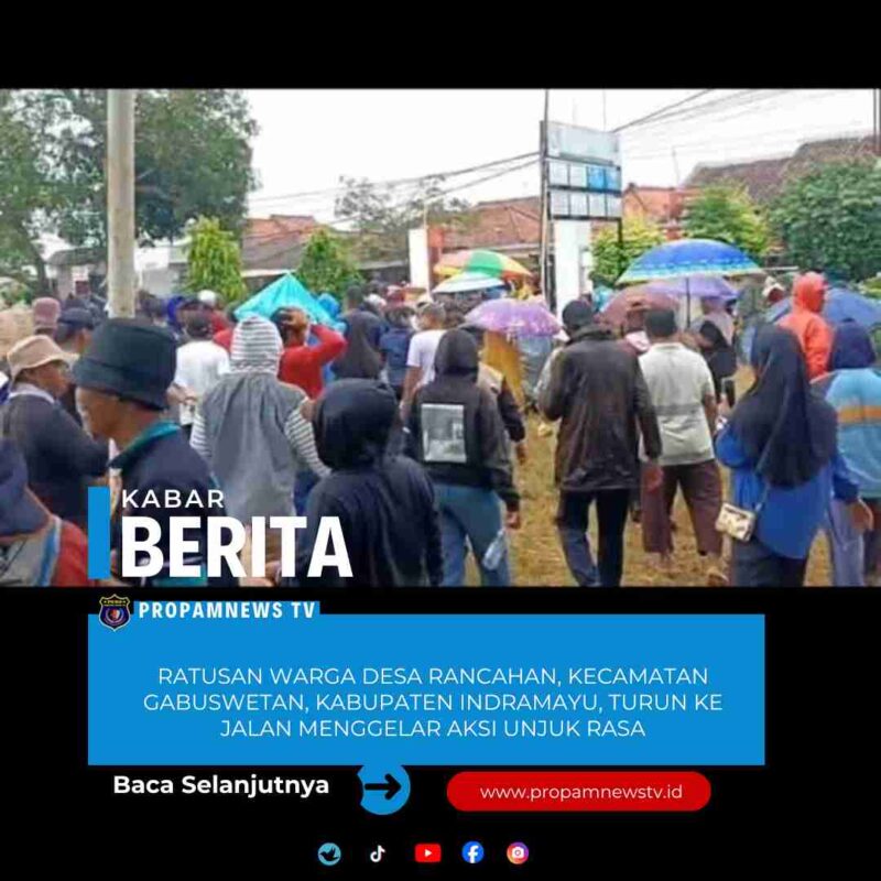 Ratusan warga Desa Rancahan, Kecamatan Gabuswetan, Kabupaten Indramayu, turun ke jalan menggelar aksi unjuk rasa