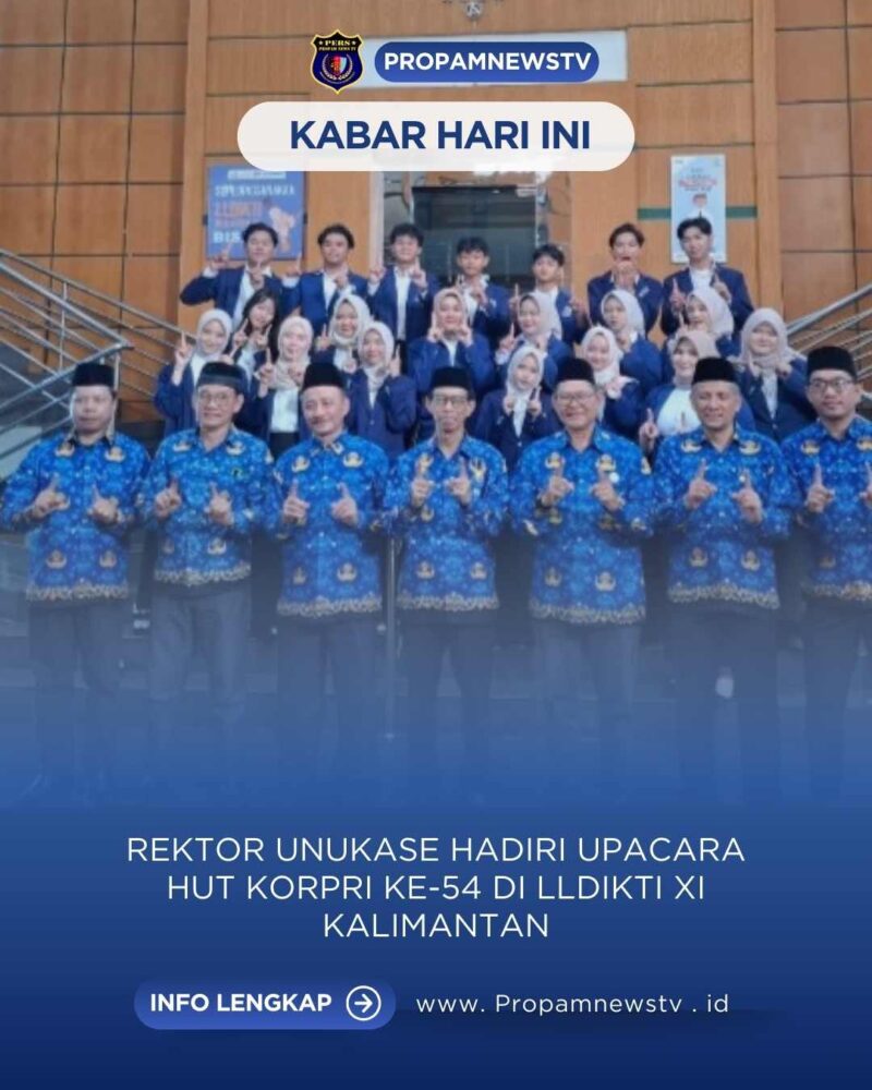 Banjarmasin // propamnewstv.id — Rektor Universitas Nahdlatul Ulama Kalimantan Selatan (UNUKASE), Dr. Ir. H. Abrani Sulaiman, M.Sc., menghadiri Upacara Peringatan Hari Ulang Tahun ke-54 Korps Pegawai Republik Indonesia (KORPRI) yang digelar di Lapangan Upacara LLDIKTI XI Kalimantan, Banjarmasin, Senin pagi (1/12/2025).