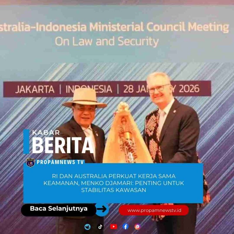 Jakarta, // PropamNewstv.id – Pemerintah Indonesia dan Australia sepakat memperkuat kerja sama keamanan lewat Pertemuan ke-11 Australia-Indonesia Ministerial Council Meeting on Law and Security (MCM) yang digelar di Kedutaan Besar Australia, Jakarta, Rabu (28/1/2026).
