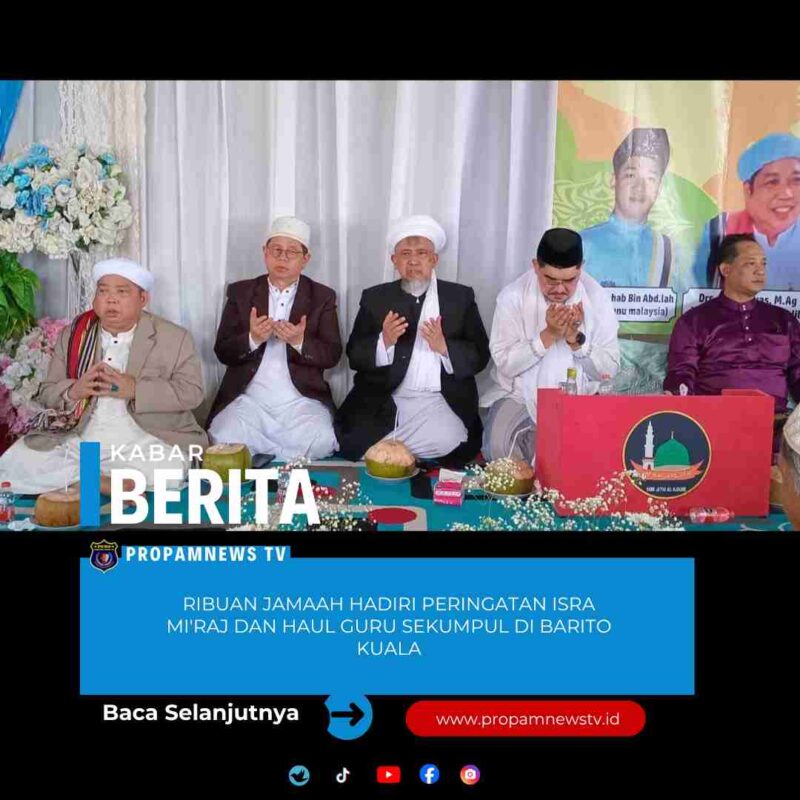 Marabahan, Barito Kuala // PropamNewstv.id – Ahad, 18 Januari 2026, Majelis Ilmu dan Dzikir Thoha 77 menggelar Peringatan Isra Mi’raj Nabi Muhammad SAW 1447 Hijriah yang dirangkaikan dengan Haul Guru Sekumpul ke-21, Ahad (18/1/2026), bertempat di Jalan Ray 5, Desa Panca Karya RT 05, Kecamatan Alalak, Kabupaten Barito Kuala, Kalimantan Selatan.