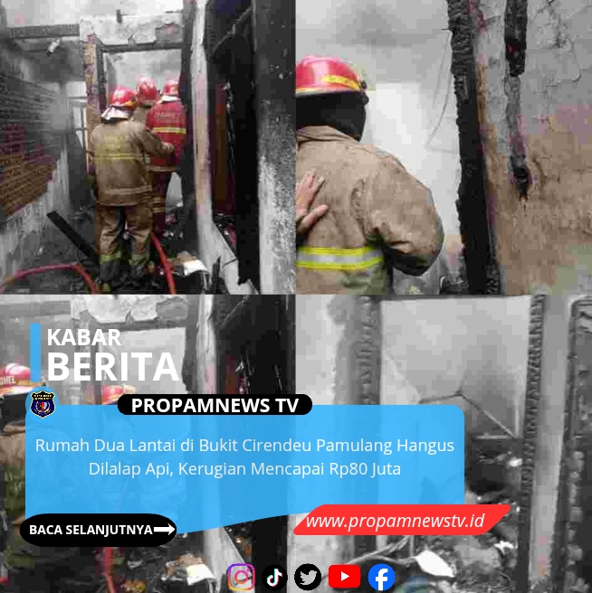 Pamulang Tangsel, // PropamNewstv. id – Sebuah rumah tinggal dua lantai di kawasan Perumahan Bukit Cirendeu, tepatnya di Jalan Anggrek D5 Nomor 5 dan 6, RT 03 RW 08, Kelurahan Pondok Cabe Ilir, Kecamatan Pamulang, Kota Tangerang Selatan mengalami kebakaran pada Senin pagi, 23 Februari 2026. Peristiwa tersebut diduga dipicu oleh hubungan arus pendek listrik (korsleting).