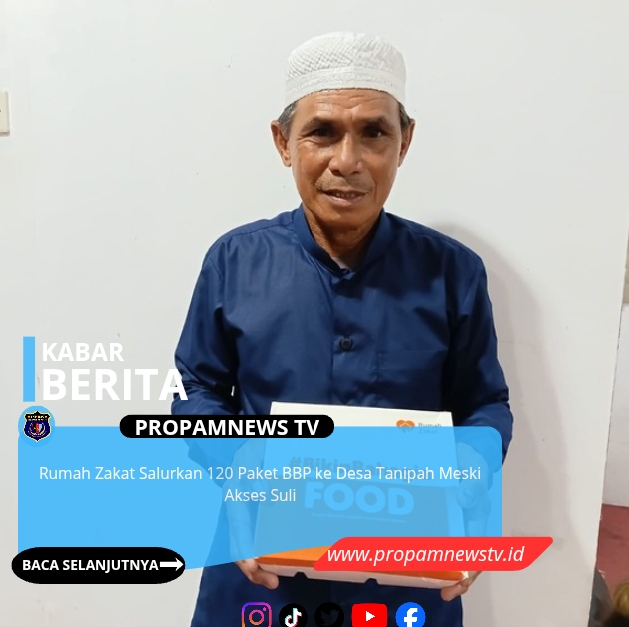 Barito Kuala, // PropamNewstv.id  – Komitmen Rumah Zakat dalam menjangkau wilayah terpencil kembali diwujudkan melalui penyaluran 120 paket Berbagi Buka Puasa (BBP) di Langgar Miftahul Jannah, RT 06, Desa Tanipah, Kecamatan Mandastana, Kabupaten Barito Kuala.
