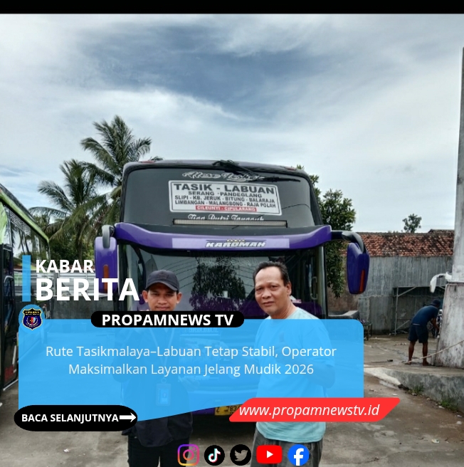 Pandeglang, // PropamNewstv.id -Layanan angkutan umum bus jurusan Tasikmalaya–Labuan (Pandeglang) dipastikan tetap beroperasi secara konsisten guna memenuhi kebutuhan mobilitas masyarakat. Salah satu jadwal keberangkatan utama diberangkatkan dari Terminal Labuan setiap pukul 20.00 WIB dengan tujuan Tasikmalaya.sabtu (21/2/2026).