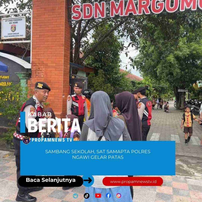 NGAWI, // PropamNewstv.id – Dalam rangka menjaga keamanan dan keselamatan lingkungan pendidikan, Satuan Samapta Polres Ngawi Polda Jatim dipimpin Kasat Samapta Polres Ngawi AKP Dandung Setiawan, S.H., M.H., membuat inovasi dengan menggelar kegiatan Patroli Keselamatan Anak Sekolah atau yang biasa disebut PATAS.