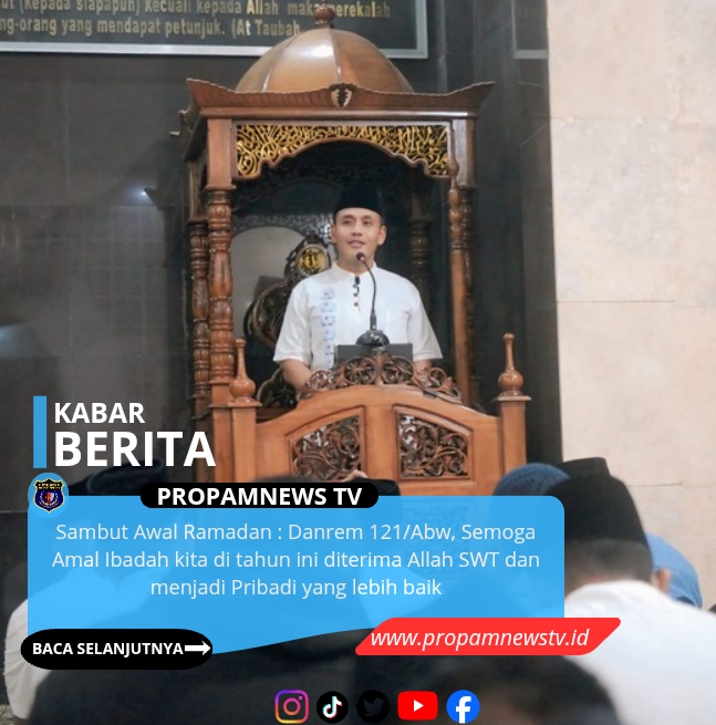 “Mari kita sambut bulan suci Ramadhan 1447 H dengan penuh suka cita gembira dan mudah”an kita selalu diberi kekuatan keimanan sampai dengan berakhirnya bulan Ramadhan” di tahun ini. ujar Danrem 121/Abw.