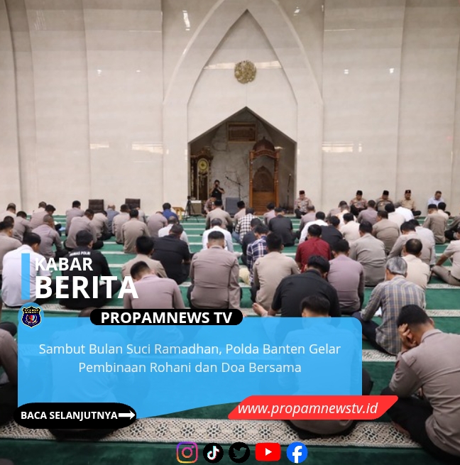 Serang, // PropamNewstv.id – Dalam rangka meningkatkan keimanan, ketakwaan, serta membentuk karakter personel yang berintegritas, Polda Banten menggelar kegiatan Pembinaan Rohani dan Mental (Binrohtal) bagi seluruh personel yang beragama Islam. Kegiatan tersebut dilaksanakan di Masjid Baiturrahman Polda Banten pada Kamis (19/02).