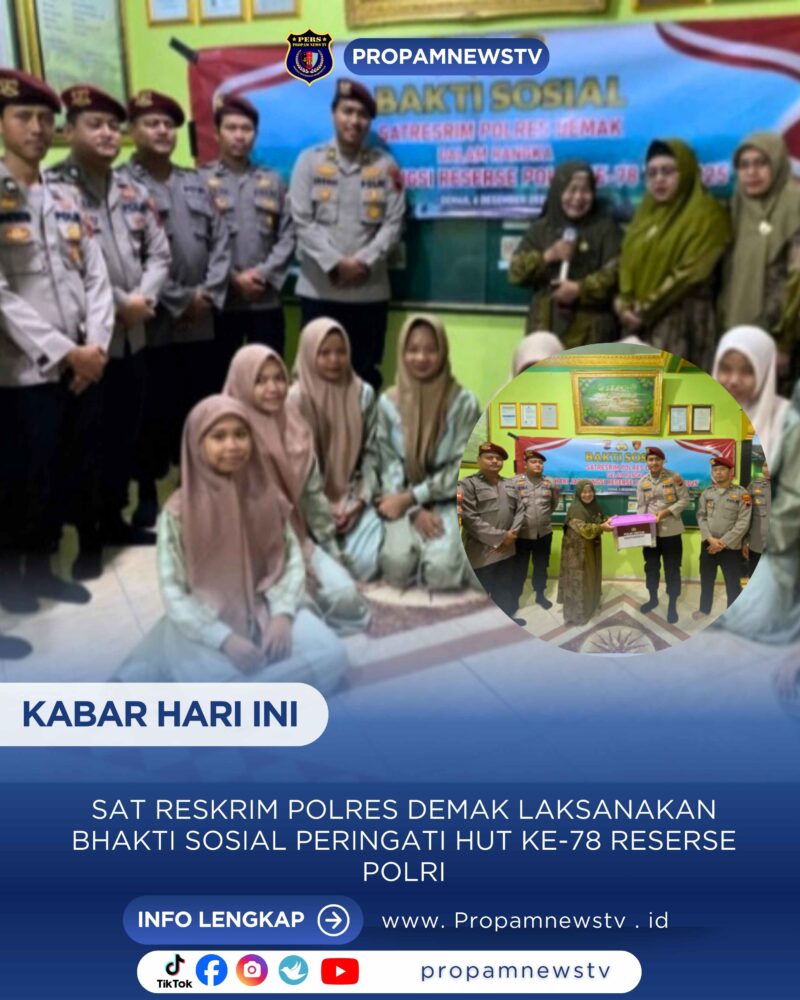Demak // propamnewstv.id – Dalam rangka memperingati Hari Ulang Tahun (HUT) ke-78 Reserse Polri, jajaran personel Satuan Reserse Kriminal (Satreskrim) Polres Demak, melaksanakan kegiatan bhakti sosial dan doa bersama di Panti Asuhan Darul Hadlonah, Kelurahan Bintoro Kecamatan Demak Kabupaten Demak, Sabtu (6/12/2025).