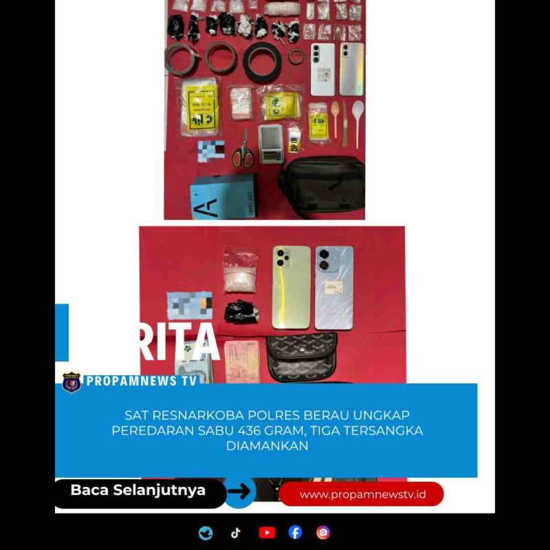 Polres Berau //propamnewstv.id – Satuan Reserse Narkoba Polres Berau kembali mengungkap kasus tindak pidana penyalahgunaan dan peredaran gelap narkotika golongan I jenis sabu di wilayah Kecamatan Tanjung Redeb. Pengungkapan tersebut dilakukan pada Jumat, 16 Januari 2026, sekitar pukul 00.30 WITA di Kelurahan Karang Ambun.