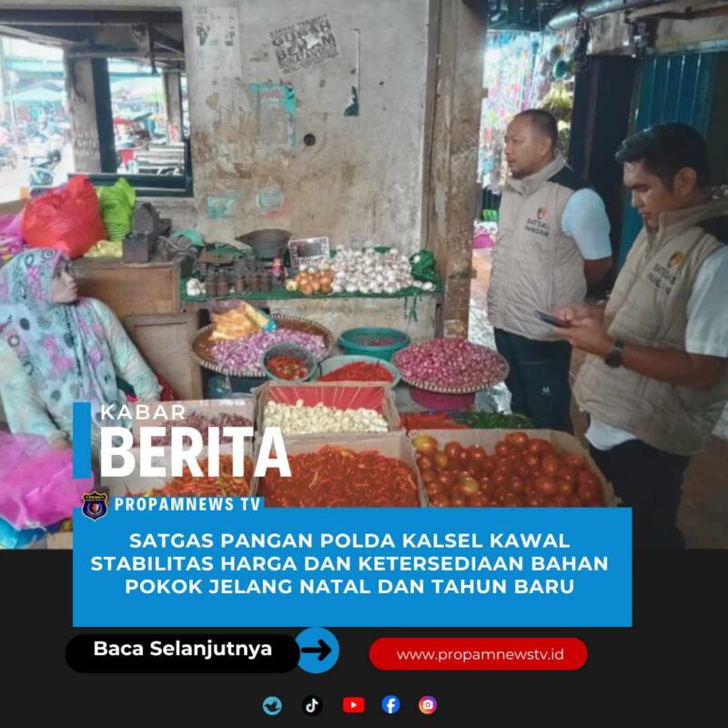 Banjarmasin // propamnewstv.id — Memastikan ketersediaan dan stabilitas harga sembilan bahan pokok (sembako) jelang perayaan Natal 2025 dan Tahun Baru 2026, Satuan Tugas (Satgas) Pangan Polda Kalimantan Selatan melakukan pengecekan langsung di Pasar Antasari, Banjarmasin, Senin (22/12/2025).