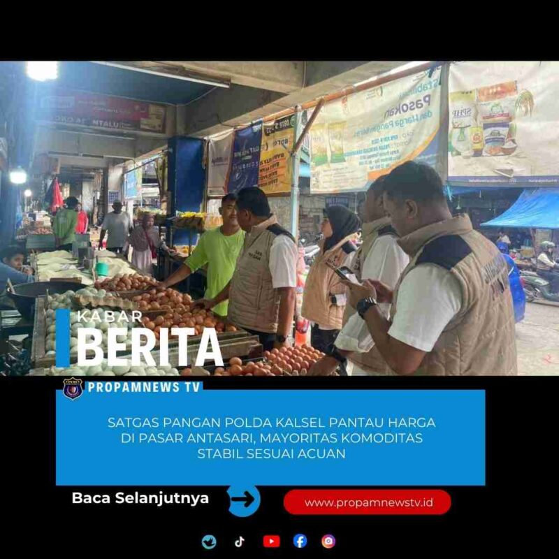 Banjarmasin, // PropamNewstv.id – Tim Satgas Pangan dari Unit 1 Subdit Indagsi Ditreskrimsus Polda Kalimantan Selatan melakukan inspeksi dan pemantauan harga bahan pokok dan kebutuhan penting (bapokting). Kegiatan yang dipimpin langsung oleh AKP Hotman Mangasi Purba, S.H., dilaksanakan di Pasar Antasari, Banjarmasin, pada Senin (26/1/2026).