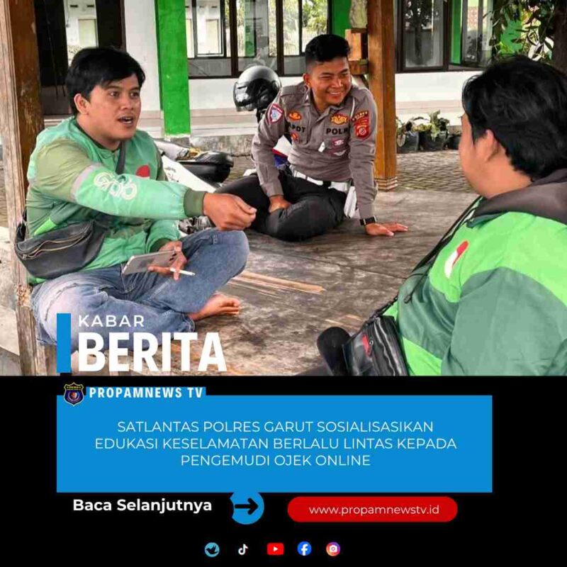 Garut, // PropamNewstv.id – Satuan Lalu Lintas (Satlantas) Polres Garut melaksanakan kegiatan sosialisasi dan edukasi keselamatan berlalu lintas kepada para pengemudi ojek online (ojol) di wilayah Kabupaten Garut. Kegiatan ini bertujuan untuk meningkatkan kesadaran serta kepatuhan pengemudi terhadap aturan lalu lintas demi terciptanya keamanan, keselamatan, ketertiban, dan kelancaran lalu lintas.