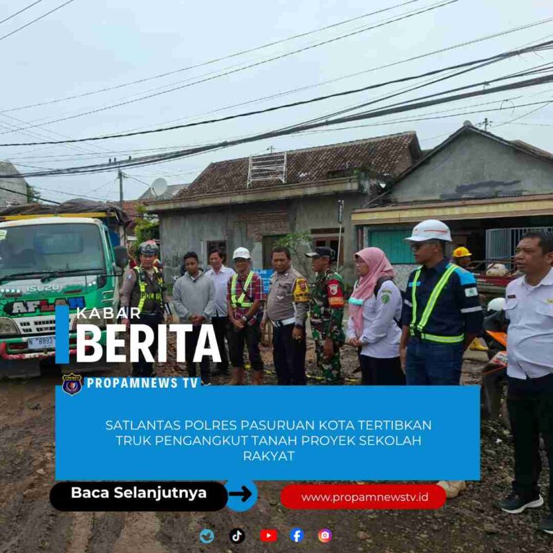 PASURUAN, // PropamNewstv.id – Satlantas Polres Pasuruan Kota melakukan pemeriksaan terhadap truk pengangkut tanah uruk proyek pembangunan Sekolah Rakyat sebagai upaya menjaga keselamatan dan kenyamanan pengguna jalan, Rabu (21/1/2026).