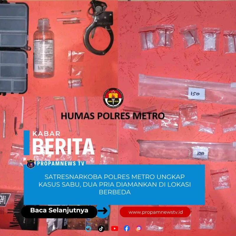 Lampung // propamnewstv.id – Satuan Reserse Narkoba (Satresnarkoba) Polres Metro kembali mengungkap tindak pidana penyalahgunaan narkotika jenis sabu di wilayah Kota Metro. Dalam pengungkapan tersebut, petugas mengamankan dua orang laki-laki di lokasi berbeda pada Senin (22/12/2025).