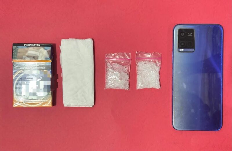 Dari pelaku MN petugas berhasil menyita barang bukti berupa 1 bungkus plastik klip yang diduga berisi narkotika golongan I bukan tanaman dengan berat bersih 0,73 gram, 1 buah pipet kaca yang berisi gumpalan serbuk Kristal warna bening yang diduga narkotika golongan I bukan tanaman, 2 bungkus plastik klip, 1 buah korek api gas, 1 buah bong yang terpasang sedotan, 1 buah gawai warna hitam, 1 lembar tisu, dan 2 buah kotak rokok.