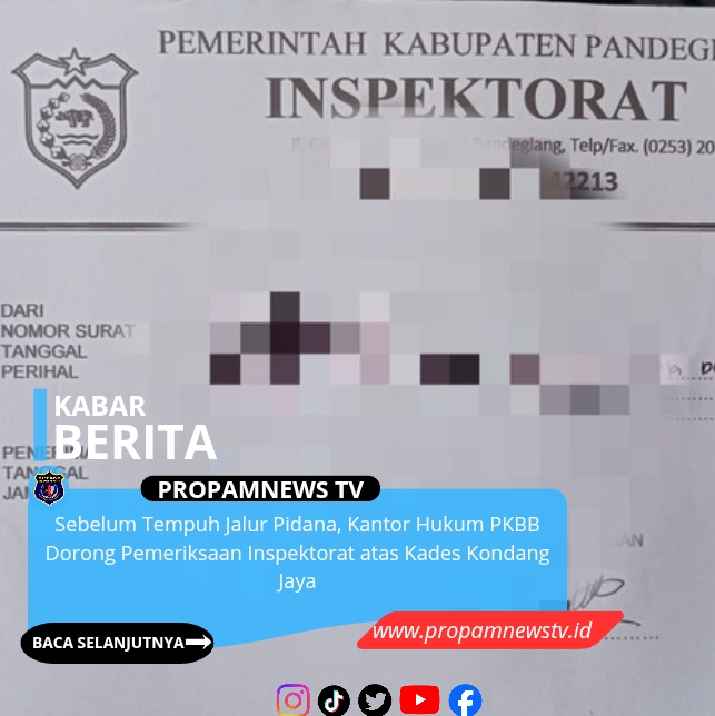 Atas dasar itu, kuasa hukum melaporkan Kepala Desa Kondang Jaya ke Inspektorat untuk dilakukan pemeriksaan atas dugaan maladministrasi sebagaimana diatur dalam Undang-Undang Nomor 30 Tahun 2014 tentang Administrasi Pemerintahan serta Undang-Undang tentang Desa.