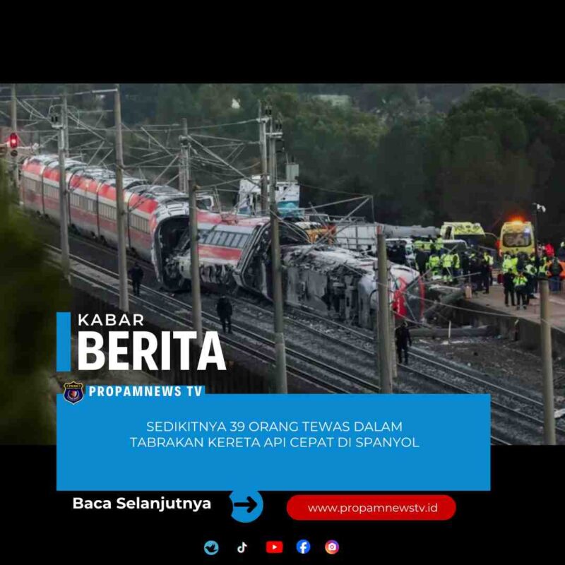 Spanyol //propamnewstv.id – Sedikitnya 39 orang tewas dan puluhan lainnya luka-luka dalam tabrakan kereta api berkecepatan tinggi di bagian selatan Spanyol, menurut kepolisian setempat. Pihak berwenang mengatakan angka tersebut “belum final” dan menyebutnya sebagai kecelakaan kereta api terburuk dalam lebih satu dekade.