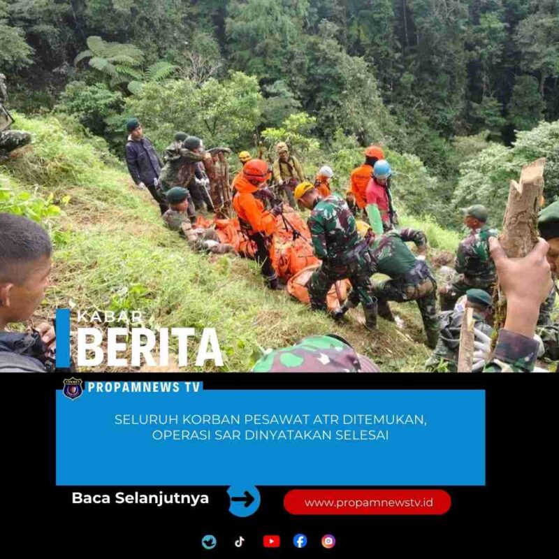 Makassar, // PropamNewstv.id – Tim gabungan resmi menutup Operasi SAR evakuasi korban kecelakaan pesawat ATR 42-500 setelah seluruh korban ditemukan dan dievakuasi dari kawasan Gunung Bulusaraung, Kabupaten Pangkep.