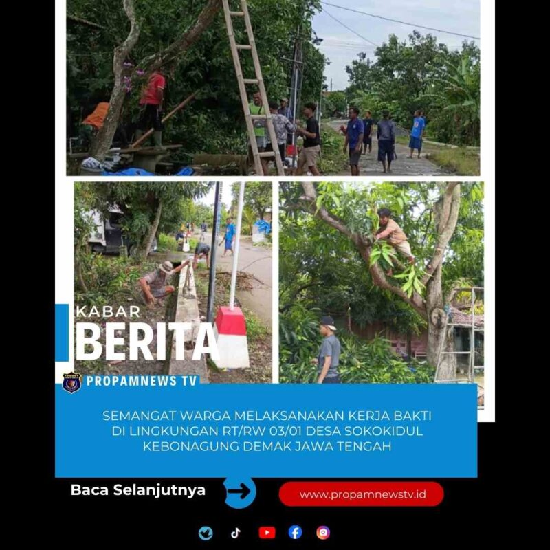 Demak, // PropamNewstv.id – Kerja bakti pembersihan bahu jalan dan ranting pohon maupun saluran di sepanjang jalan wilayah RT/RW 03/01 di laksanakan oleh warga pada minggu pagi Tgl 25/1/2026 yang di lakukan secara mandiri.