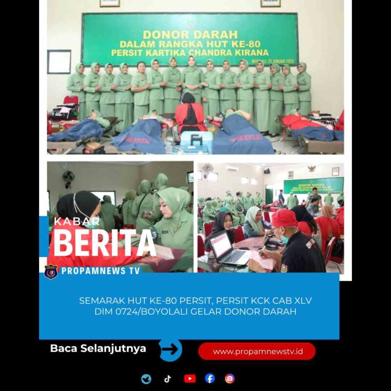 Kegiatan donor darah yang digelar Persit KCK Cab XLV Dim 0724/Boyolali ini menjadi momentum penting dalam memperkuat sinergitas TNI dengan masyarakat dan berbagai elemen pemerintah, sejalan dengan semangat HUT ke-80 Persit Kartika Chandra Kirana yang akan diperingati pada 3 April 2026 mendatang.