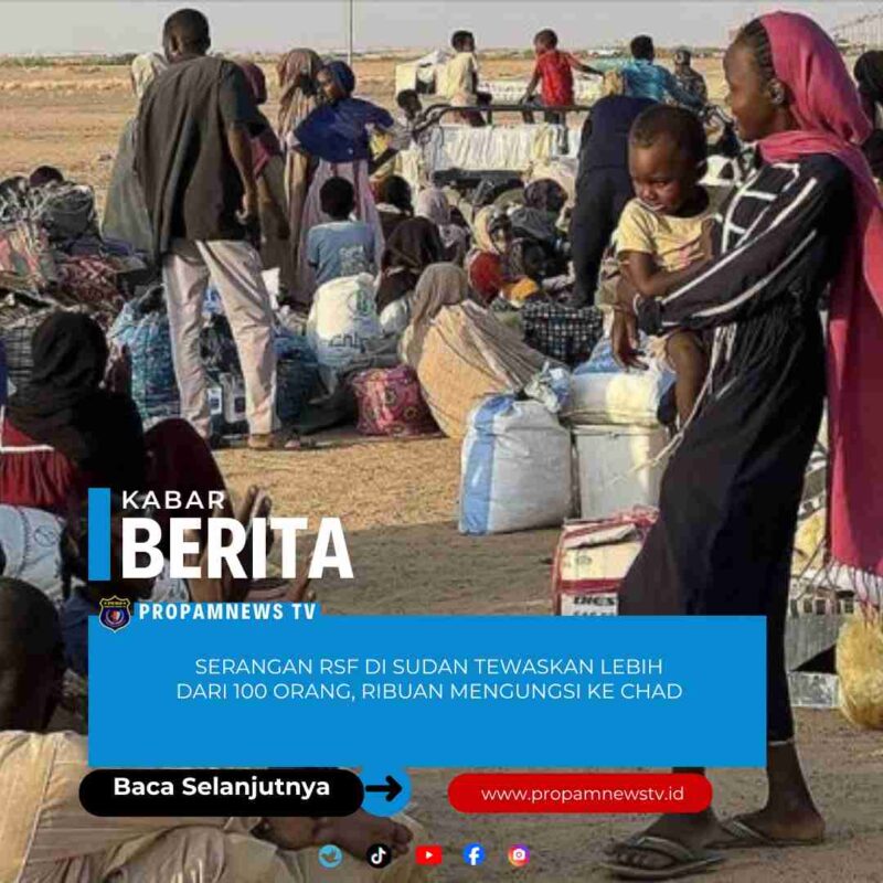 Darfur, // PropamNewstv.id – Lebih dari 100 warga sipil dilaporkan tewas dan ribuan keluarga terpaksa mengungsi ke Chad setelah serangkaian serangan yang diduga dilakukan oleh kelompok paramiliter Rapid Support Forces (RSF) di wilayah Darfur, Sudan. Informasi tersebut disampaikan oleh kelompok bantuan lokal.