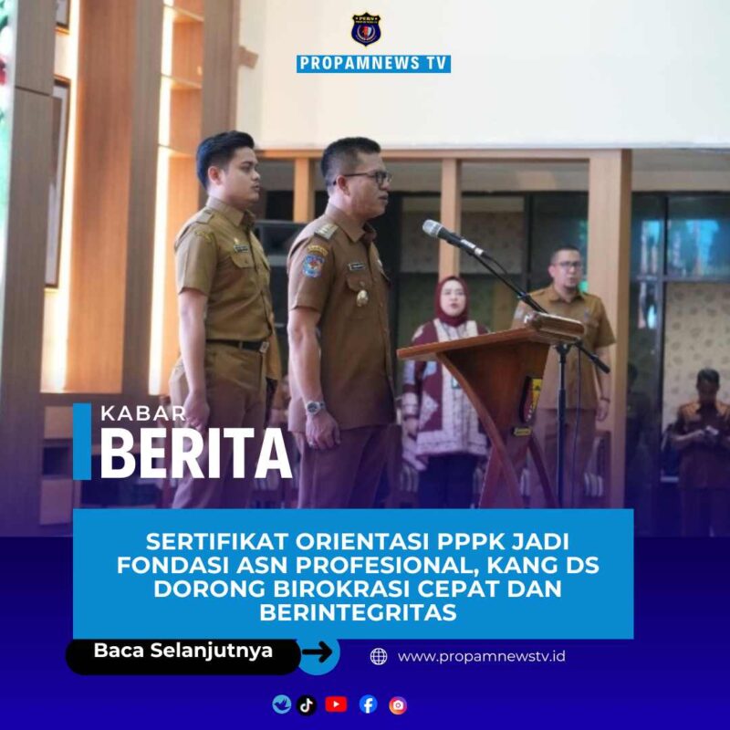 KABUPATEN BANDUNG // propamnewstv.id – Pemerintah Kabupaten Bandung menegaskan komitmennya membangun ASN yang berkarakter, berintegritas, dan profesional melalui penyerahan Sertifikat Orientasi Pegawai Pemerintah dengan Perjanjian Kerja (PPPK) Tahun Anggaran 2025. Sertifikat ini menjadi penanda kesiapan sekaligus syarat penting bagi PPPK dalam melanjutkan kontrak kerja dan menjalankan peran sebagai pelayan masyarakat.