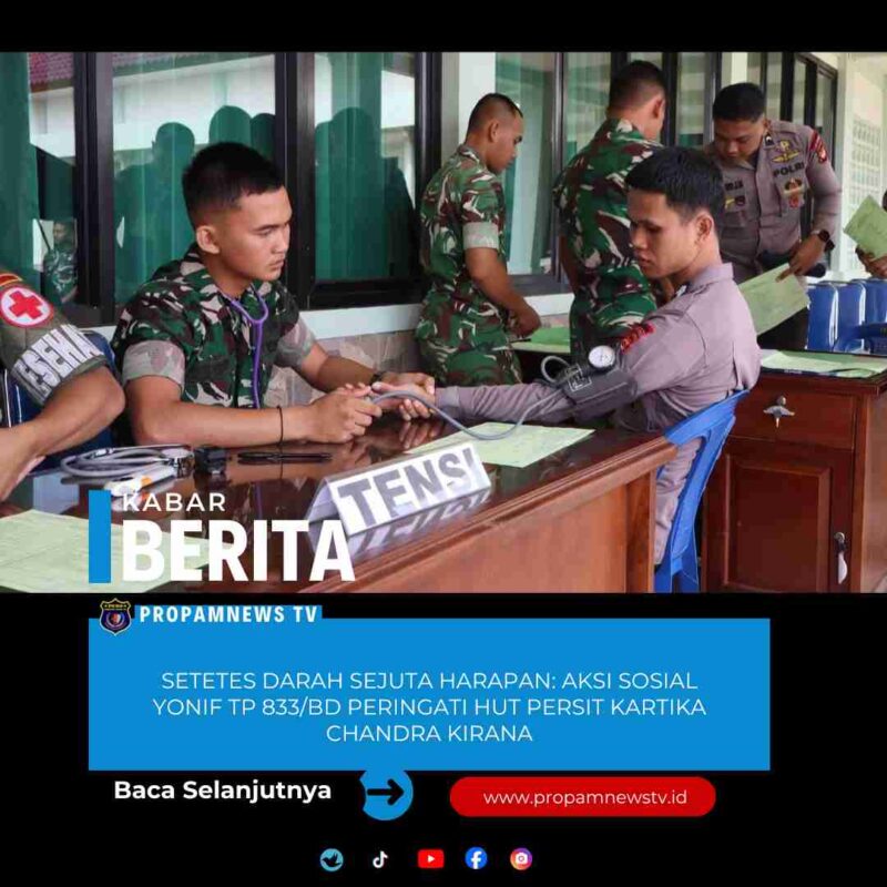 SANGGAU, // PropamNewstv.id – Mengusung tema kemanusiaan, Cabang LVIII Yonif TP 833 Koorcab Rem 121 PD XII/Tanjungpura menggelar aksi bakti sosial donor darah di Markas Yonif TP 833/BD, Sanggau, Kamis (5/2/26). Kegiatan ini dilaksanakan sebagai rangkaian peringatan Hari Ulang Tahun ke-80 Persit Kartika Chandra Kirana.