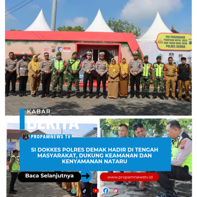 Demak // propamnewstv.id – Dalam rangka mendukung pelaksanaan Operasi Lilin Candi 2025, Seksi Kedokteran dan Kesehatan (Si Dokkes) Polres Demak menggelar bakti kesehatan dengan memberikan pelayanan kesehatan gratis kepada masyarakat di kompleks wisata religi Masjid Agung Demak, Selasa (23/12/2025).