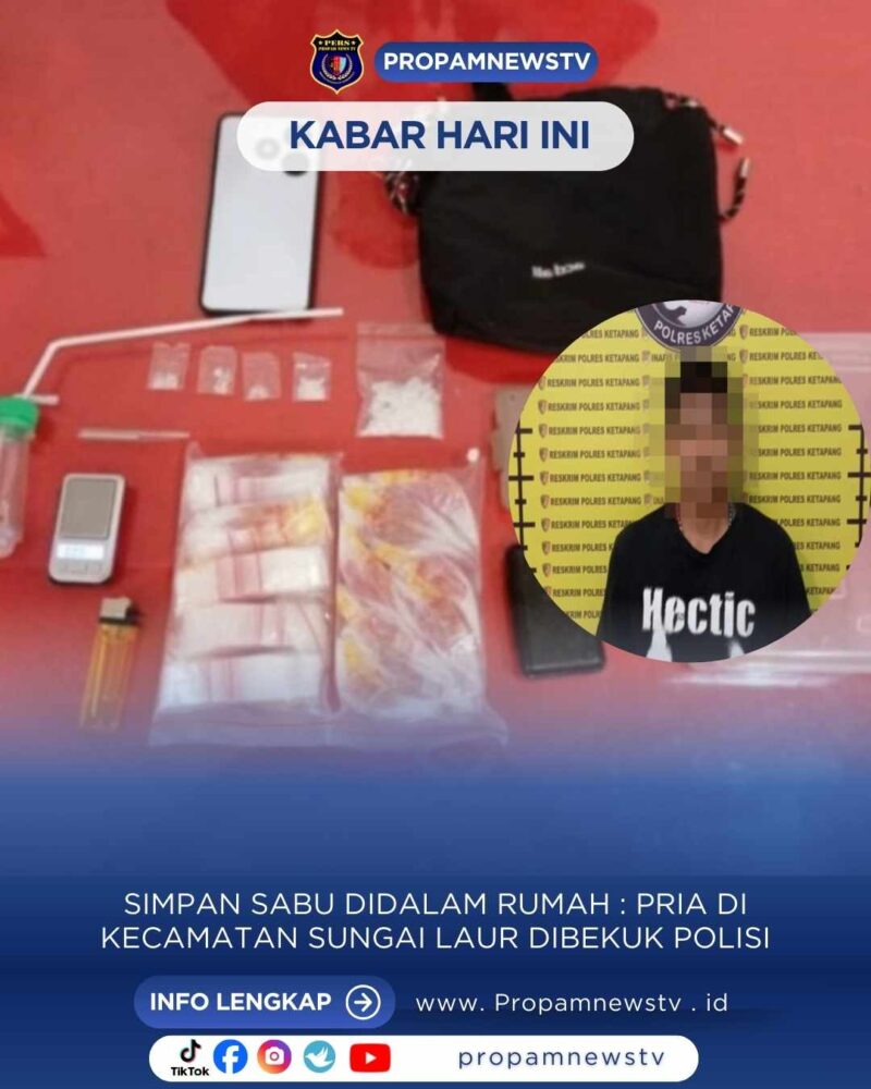 KETAPANG // propamnewstv.id – Seorang pria berinisial ATA (26) warga Desa Bengaras Kecamatan Sungai Laur Kabupaten Ketapang diamankan jajaran Polsek Sungai Laur pada Sabtu (29/11/2025) sekira Pukul 17.00 Wib. ATA diamankan lantaran kedapatan menguasai narkoba jenis sabu. Penangkapan ini bermula saat petugas dari Polsek Sungai Laur mendapatkan informasi mengenai keberadaan pelaku yang sedang menguasai sabu dirumahnya.