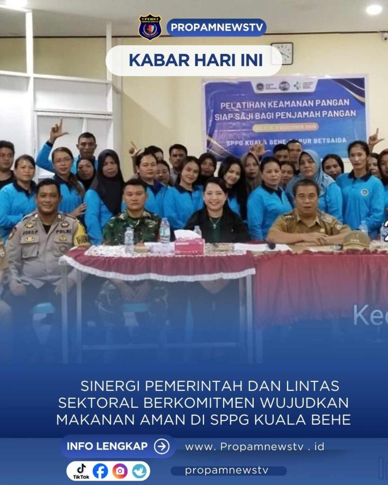 KUALA BEHE, LANDAK//propamnewstv.id – Kapolsek Kuala Behe IPTU Eko Kurniawan S.H., M.H., melalui Bhabinkamtibmas Polsek Kuala Behe Brigadir Djoko Puji Santosa menghadiri undangan kegiatan Pelatihan Penjamah Makanan bagi para pengelola dan penjamah makanan di wilayah SPPG Kuala Behe. Kegiatan ini bertujuan meningkatkan pengetahuan serta keterampilan peserta dalam menjaga keamanan, mutu, dan higienitas makanan yang disajikan kepada masyarakat. Selasa (2/12/3025).