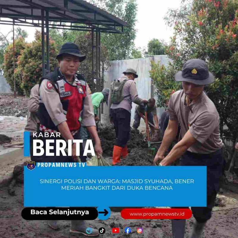 Aceh // PropamNewstv.id – Sisa lumpur masih menempel di halaman Masjid Syuhada, menjadi saksi bisu dahsyatnya banjir dan longsor yang melanda kawasan Waq Pondok Sayur, Kecamatan Bukit, Kabupaten Bener Meriah. Namun di tengah jejak bencana tersebut, harapan perlahan tumbuh seiring bangkitnya semangat kebersamaan antara Polri dan masyarakat.