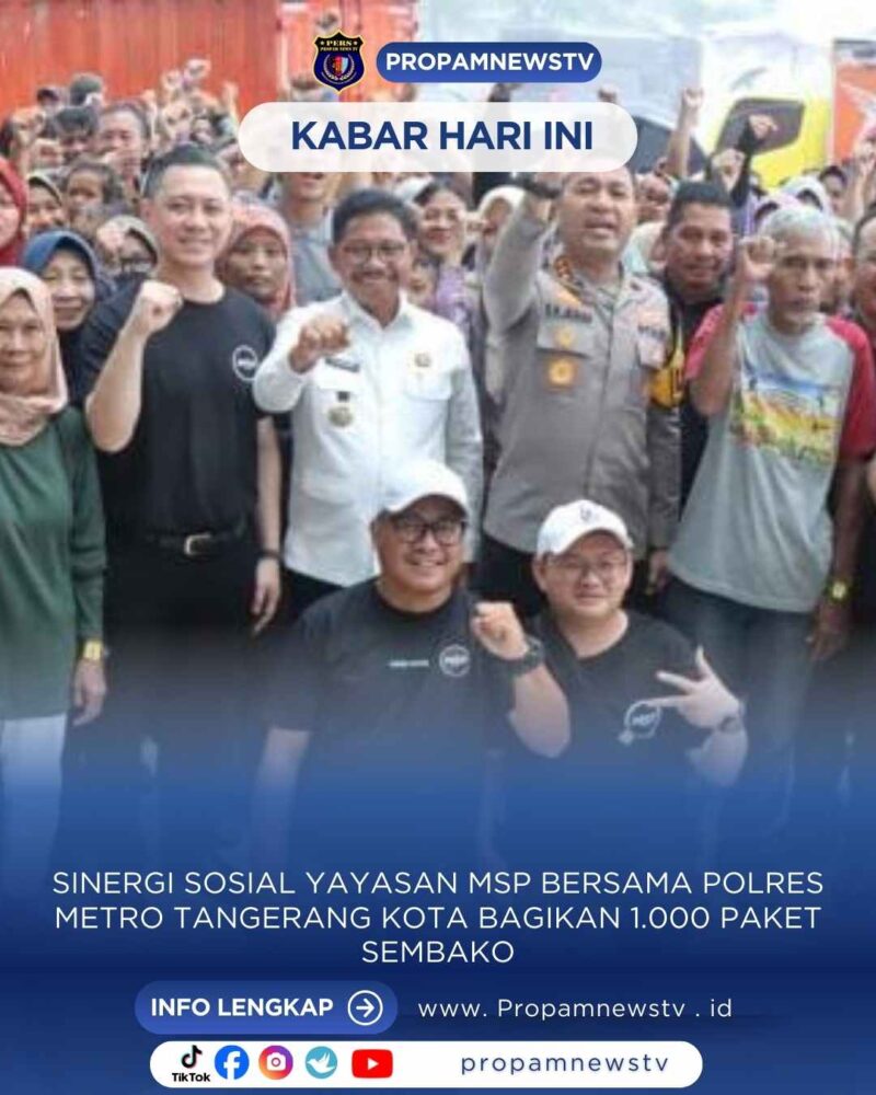 Tangerang Kota Rabu 3 Desember 2025 // PROPAMNEWSTV — Yayasan Mawar Sharon Peduli (MSP) bekerja sama dengan Polres Metro Tangerang Kota, Polda Metro Jaya, menggelar aksi sosial berupa penyaluran 1.000 paket sembako untuk masyarakat di wilayah hukum Polres Metro Tangerang Kota, Rabu (3/12/2025).