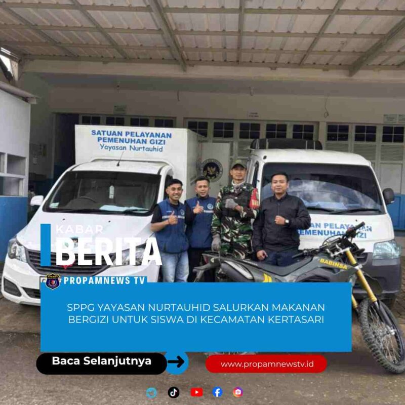 Kabupaten Bandung, // PropamNewstv.id – Satuan Pelayanan Pemenuhan Gizi (SPPG) Yayasan Nurtauhid melaksanakan kegiatan pendistribusian makanan bergizi kepada siswa sekolah di Kampung Kebon Hui, Desa Cibeureum, Kecamatan Kertasari, Kabupaten Bandung, Senin (13/1/2026).