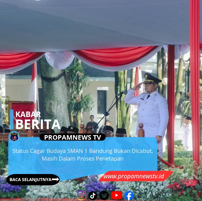 KOTA BANDUNG, // PropamNewstv.id  — Pemerintah Kota Bandung menegaskan bahwa status cagar budaya SMAN 1 Bandung (Smansa) bukan dicabut, melainkan saat ini masih berada dalam proses penetapan sesuai ketentuan perundang-undangan yang berlaku.