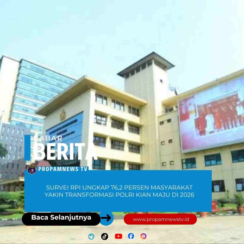 Jakarta, // PropamNewstv.id – Rumah Politik Indonesia (RPI) mempublikasikan hasil riset terbaru mengenai kinerja Kepolisian Republik Indonesia (Polri) melalui studi bertajuk Survei Nasional Optimisme Publik Terhadap Transformasi Budaya Polri. Dalam survei tersebut, mayoritas responden menyatakan keyakinannya bahwa Polri akan mengalami perbaikan signifikan pada tahun 2026.