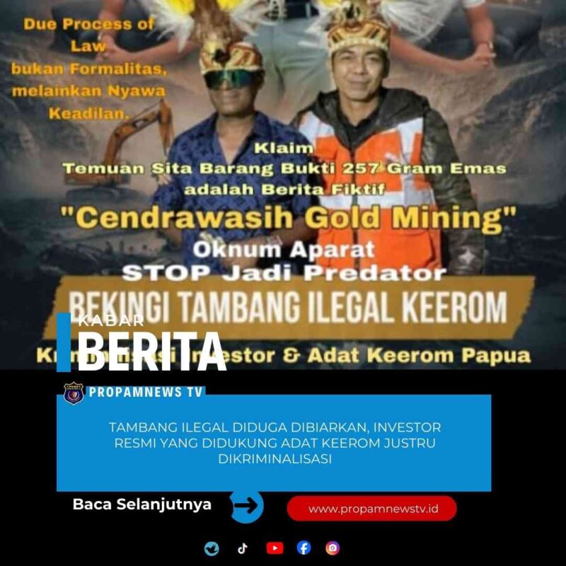 Namun ironisnya, perusahaan PT Sawerigading yang mengantongi dukungan masyarakat adat dan koperasi masyarakat adat yang tengah menempuh jalur perizinan resmi itu kini justru terseret proses hukum dan di kriminalisasi atas dugaan penambangan emas ilegal dan membiarkan tambang ilegal yang telah beroperasi berlangsung puluhan tahun di Keerom malah tidak ditindak secara tegas, ini ada apa ? Situasi ini memunculkan polemik di tengah masyarakat.
