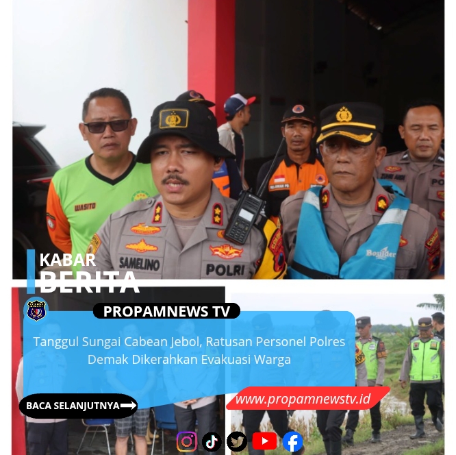 DEMAK, // PropamNewstv – Tanggul Sungai Cabean di Dukuh Singopadu, Desa Sidorejo, Kecamatan Karangawen, Kabupaten Demak, Jawa Tengah, jebol pada Senin (16/2/2026) sekitar pukul 05.00 WIB. Peristiwa itu memicu banjir di sejumlah wilayah di Kecamatan Karangawen dan Guntur.