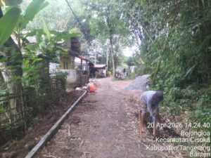BANTEN //propamnewstv.id/  – Kegiatan pemasangan paving blok di Kampung Bojong Loa RT 04/01, Desa Bojong Loa, Kecamatan Cisoka, menuai sorotan warga karena tidak dilengkapi papan informasi proyek. Senin (20/04/2026). Berdasarkan penelusuran di lokasi, para pekerja mengaku tidak mengetahui secara pasti siapa pelaksana kegiatan tersebut.