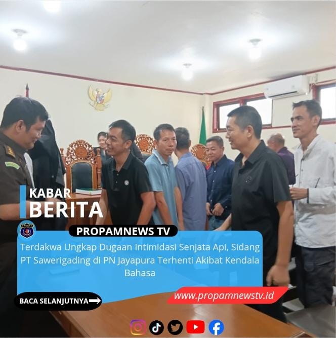 JAYAPURA, // PropamNewstv.id  – Sidang perdana pokok perkara nomor 10/Pid.Sus/2026/PN Jap terkait dugaan tindak pidana pertambangan emas ilegal yang melibatkan PT Sawerigading International Group berlangsung alot di Pengadilan Negeri (PN) Jayapura, Rabu (11/2/2026). Sidang harus ditunda setelah munculnya keberatan serius dari terdakwa mengenai prosedur penyidikan dan ketiadaan penerjemah tersumpah bagi lima Warga Negara Asing (WNA).